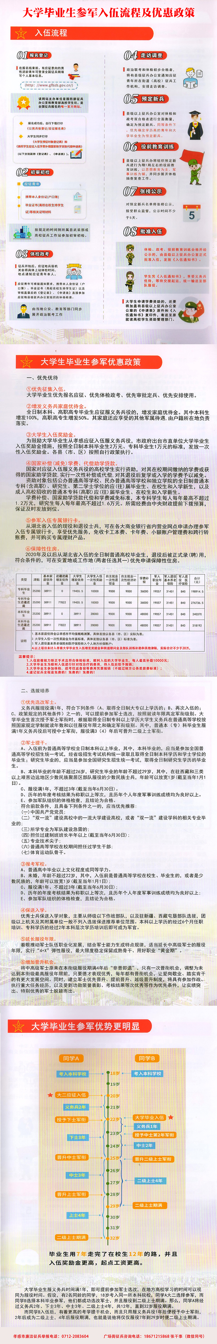 对应征入伍的普通高校毕业生、毕业班学生、在校生,由中央财政实施相应的学费补偿和国家助学贷款代偿。当年已被高校录取的高中毕业生入伍后保留入学资格,退役后享受国家学费减免政策。